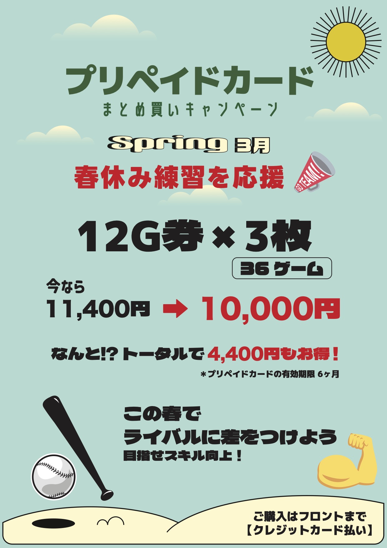 キャンペーン 春休み応援キャンペーン!まとめ買いがお得! 2026.03.01 2026.03.02 キャンペーン ◆ 12ゲーム券 ✖︎ 3枚(36ゲーム) 今なら 10,000円 でご購入できます! 清水直行 たくさん打ってライバルに差をつけよう! 記事のタイトルとURLをコピーする 火曜日限定キャンペーン くじ引きチャレンジ開催中!前の記事 1周年プレゼントキャンペーン! 開催中次の記事 新着のお知らせ 1周年プレゼントキャンペーン! 開催中 2026.03.02 火曜日限定キャンペーン くじ引きチャレンジ開催中! 2026.02.16 3月も継続決定! 毎日 打ち放題 開催中 2026.02.01 営業時間変更のお知らせ 2026.01.05